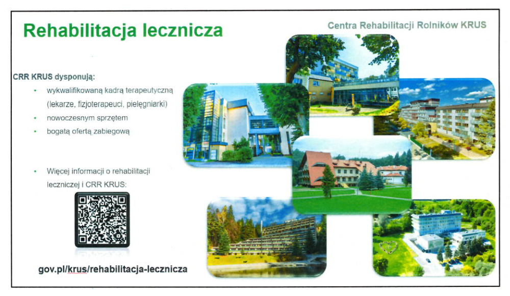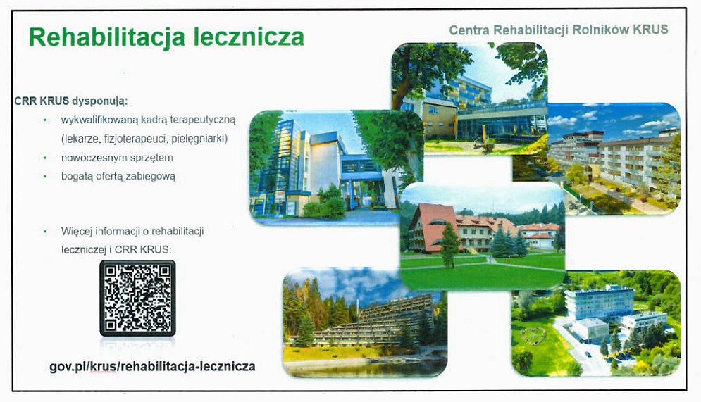 KRUS dla rolnictwaDoceniając rolę KRUS w życiu rolnika, zamieszczamy informację o rehabilitacji leczniczej prowadzonej przez wyspecjalizowane Centra Rehabilitacji Leczniczej KRUS.