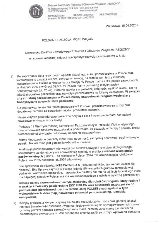 W dniu 15 kwietnia br. podczas posiedzenia sejmowej Komisji Rolnictwa i Rozwoju Wsi dotyczącego sytuacji w pszczelarstwie Pani Jowita Krzyżanowska-Kupczak, Przewodnicząca Sekcji Pszczelarskiej Związku, przedstawiła związkową ocenę stanu polskiego pszczelarstwa oraz wnioski dotyczące jego poprawy.