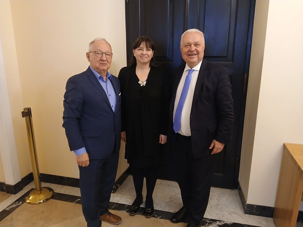 Zdjęcie na pamiątkę posiedzenia Komisji Rolnictwa i Rozwoju Wsi w Sejmie. Od lewej Bolesław Borysiuk, Przewodniczący Związku, Jowita Krzyżanowska-Kupczak, Przewodnicząca Sekcji Pszczelarskiej Związku, Jacek Czerniak, Sekretarz Stanu w Ministerstwie Rolnictwa i Rozwoju Wsi.